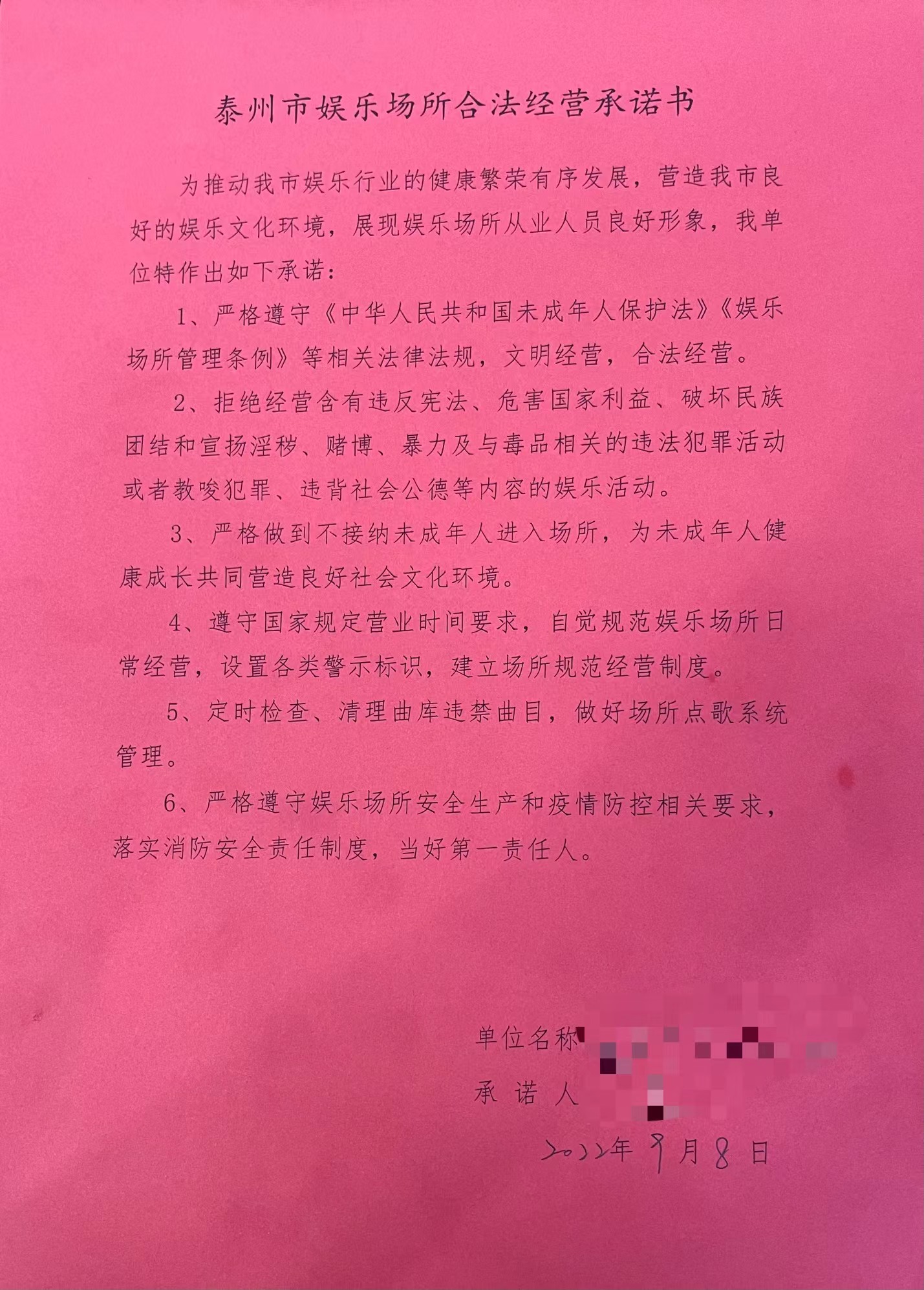 会后,30余名经营业主当场签署了《泰州市娱乐场所合法经营承认书》,承诺严格做到不接纳未成年人进入场所,为未成年人健康成长共同营造良好社会文化环境。